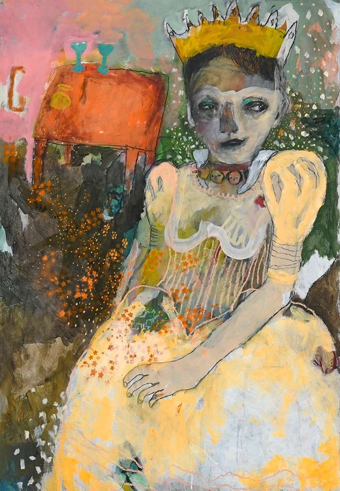 fleeting innocence II, oil, acrylic, prismacolor & charcoal on paper, 44" x 30"