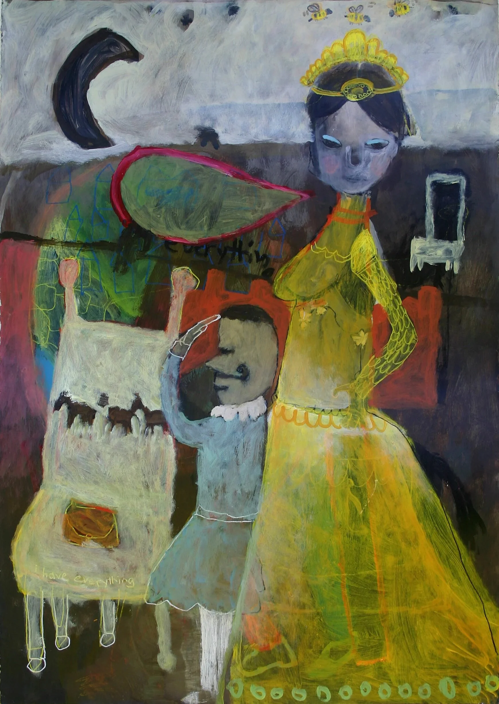 the queen bee, acrylic & charcoal on canvas, 44" x 30"