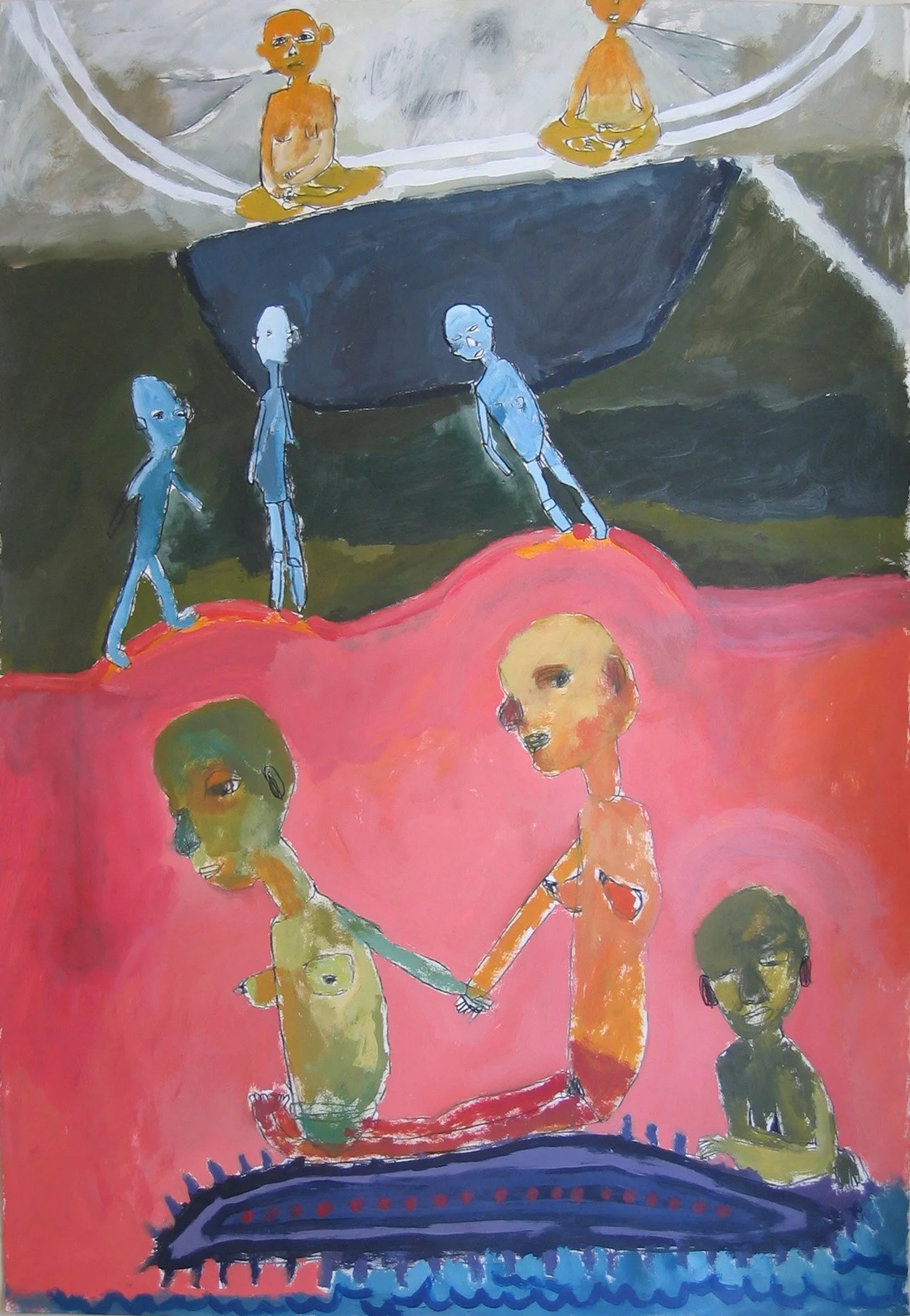 green figure with child, acrylic & charcoal on paper, 44" x 60"