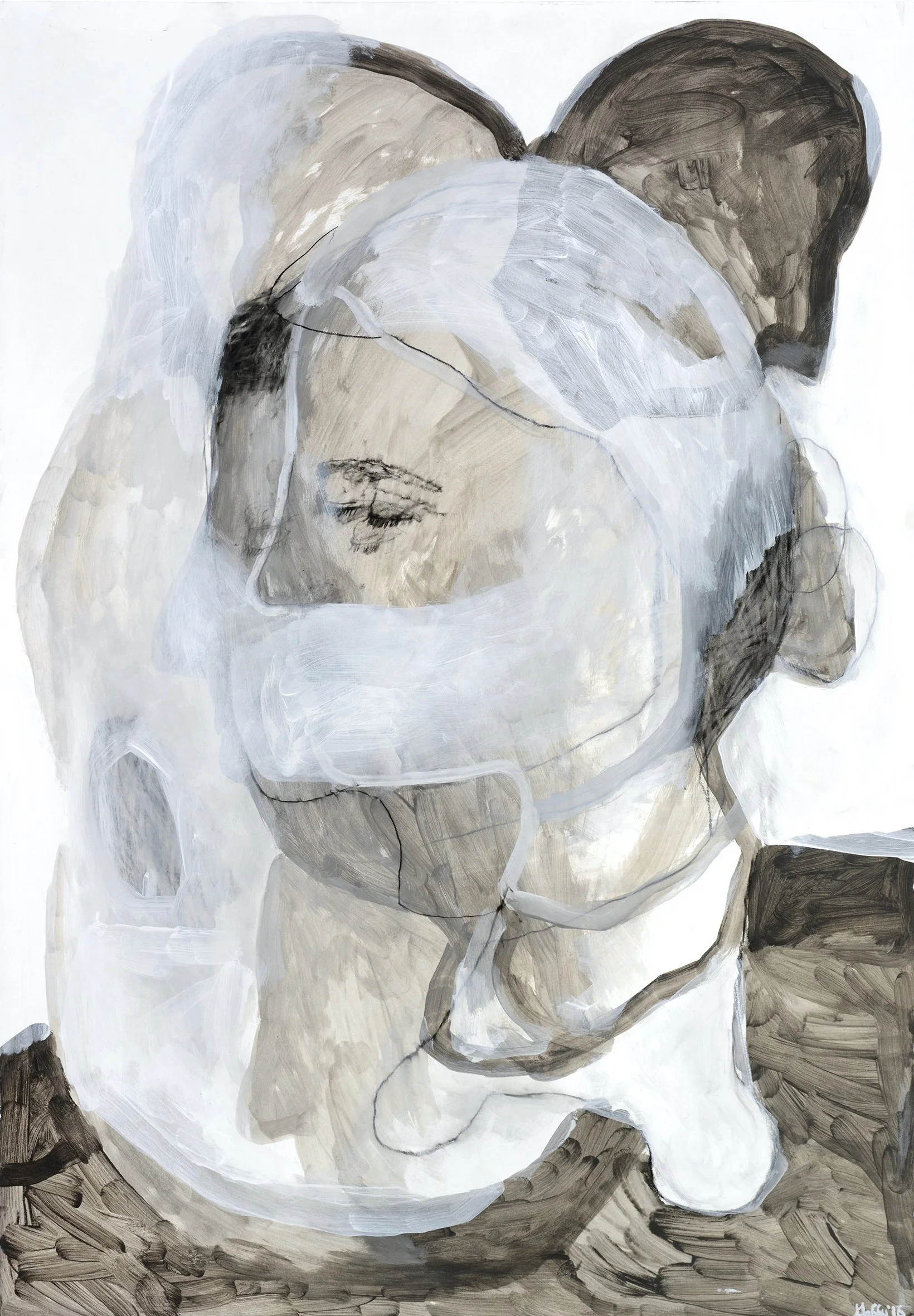 muted head, acrylic & charcoal on paper, 44" x 30"
