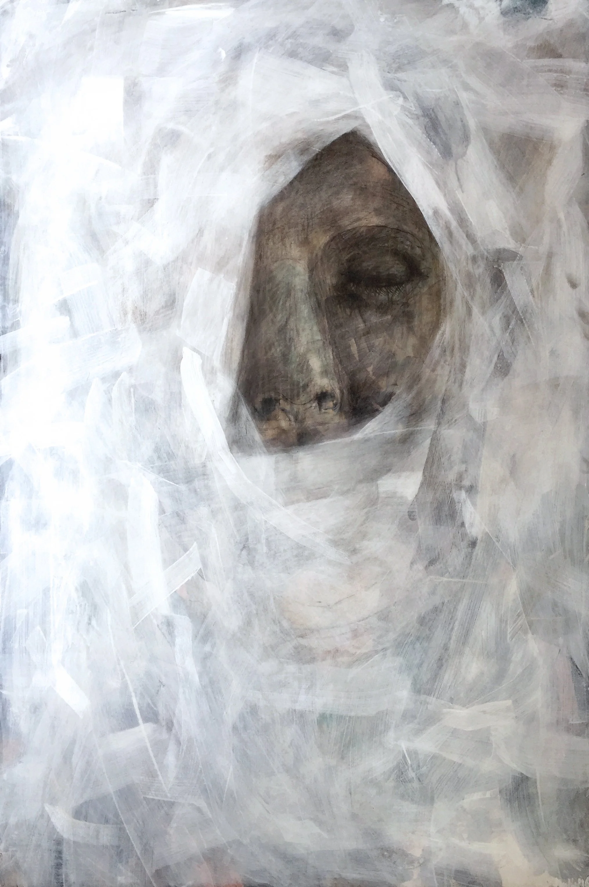 veiled figure, acrylic & charcoal on paper, 44" x 30"