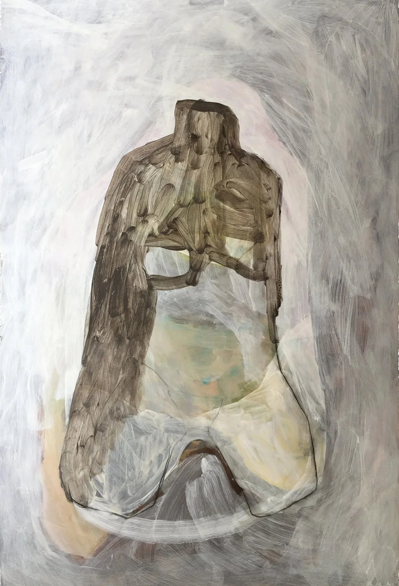 cloaked figured, acrylic & charcoal on paper, 44" x 30"